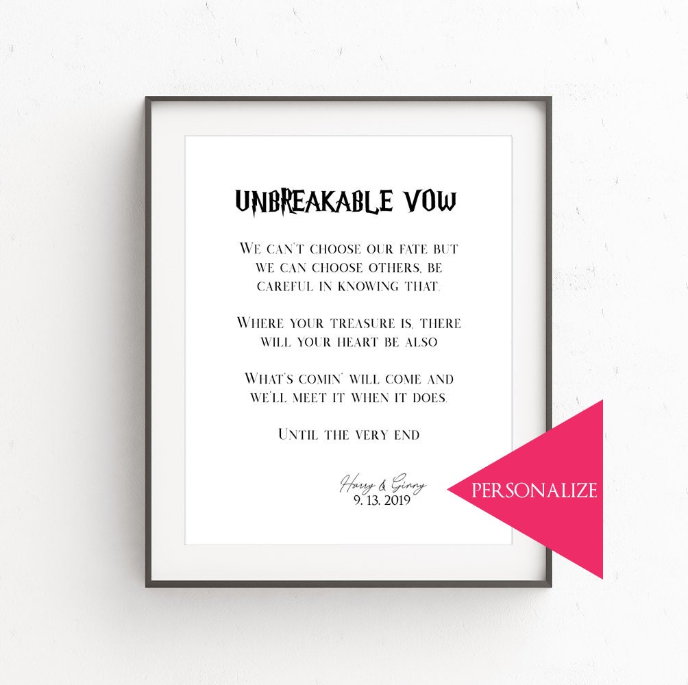 Unbreakable Vow Harry Potter Quotes Wedding Vows Gift Etsy